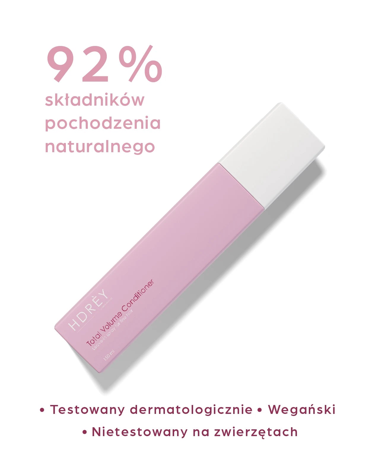 Lekkość i objętość. Odżywka unosi włosy u nasady, nadając im lekkość i pełnię.