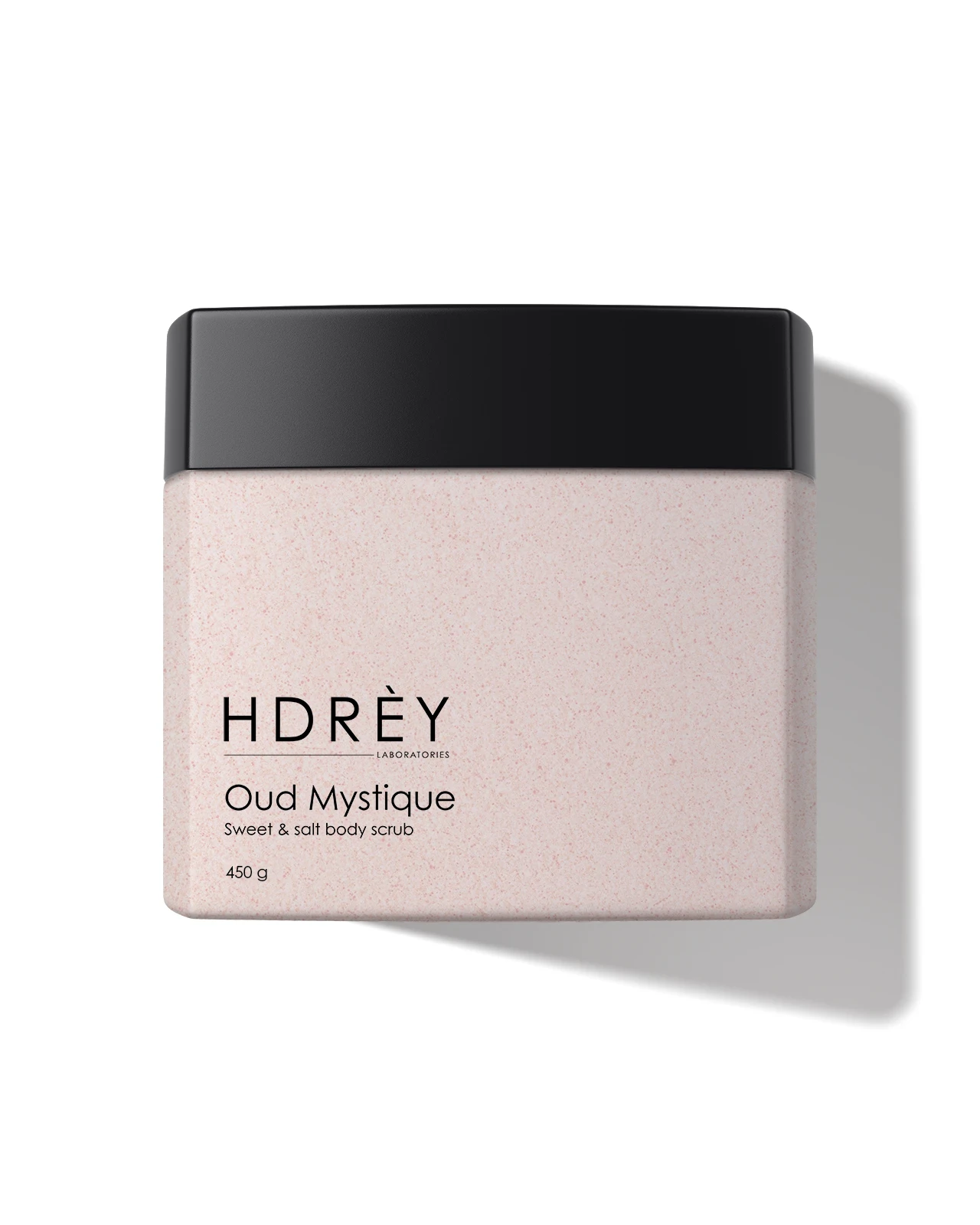 HDRÈY Oud Mystique Sweet & Salt Body Scrub zachwyca złożoną kompozycją zapachową, która rozwija się w trzech etapach, dostarczając niezapomnianych doznań:
