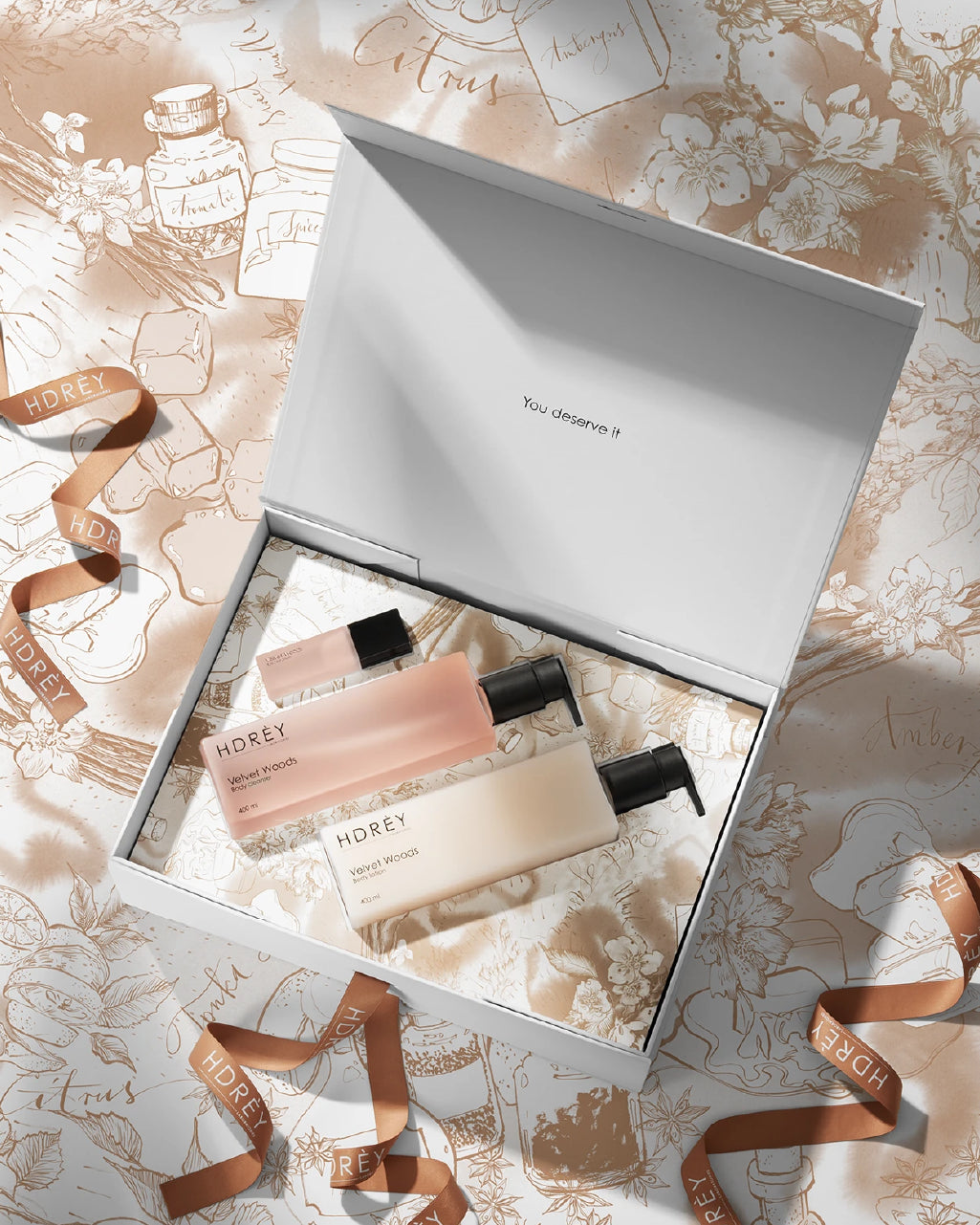 Velvet Woods Eau de Parfum 10 ml – ekskluzywne perfumy, które dopełniają całość rytuału pielęgnacyjnego, pozostawiając trwały i elegancki aromat.