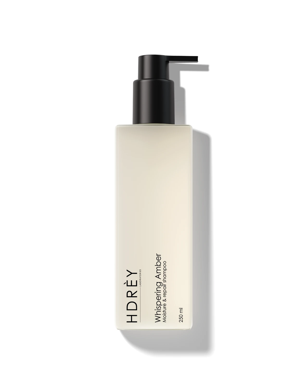 HDRÈY Whispering Amber Moisture & Repair Shampoo zachwyca złożoną kompozycją zapachową, która rozwija się w trzech etapach, dostarczając niezapomnianych doznań: