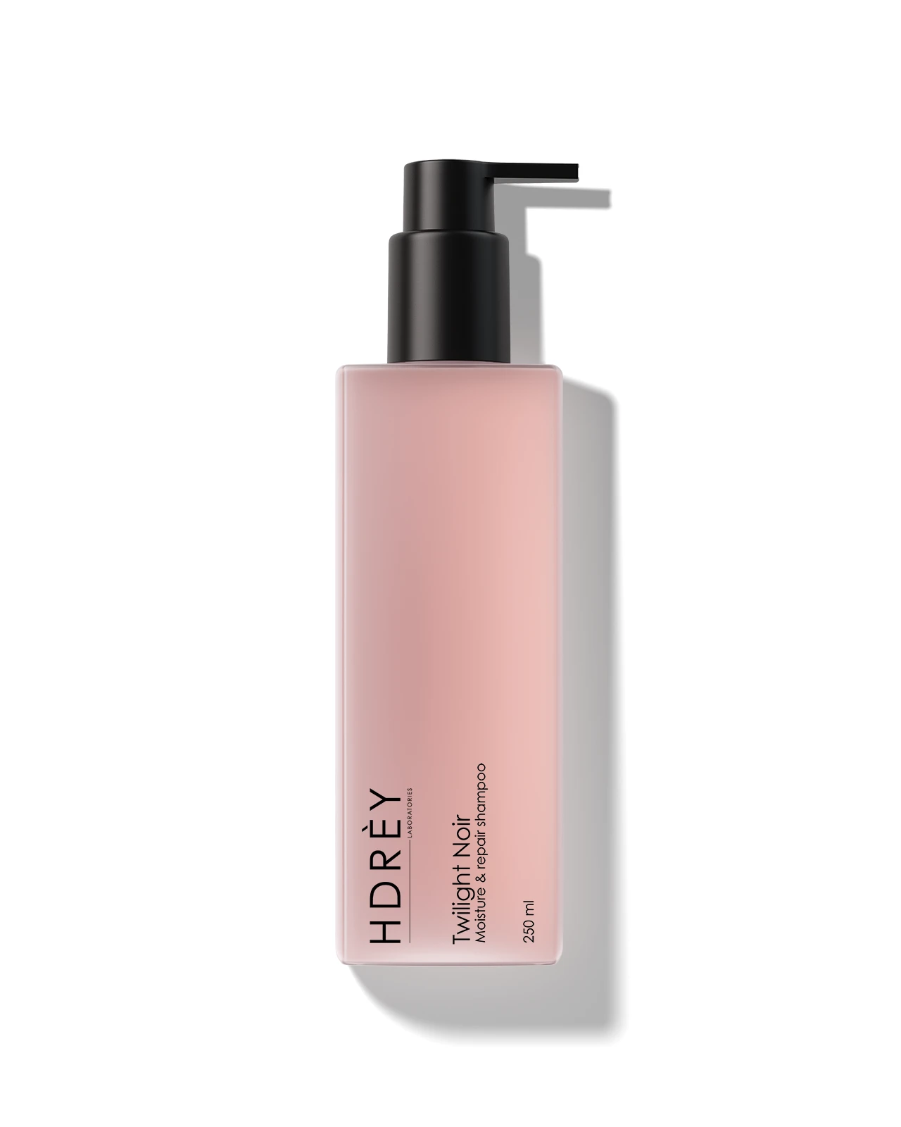 HDRÈY Twilight Noir Moisture & repair shampoo nawilża i regeneruje, łącząc skuteczną pielęgnację z wyjątkową kompozycją zapachową. Dzięki innowacyjnemu kompleksowi Genesis HPS3®, szampon intensywnie nawilża, odżywia i wzmacnia włosy, przywracając im miękkość, elastyczność i zdrowy blask. Jego lekka formuła ułatwia rozczesywanie, zapobiega puszeniu się włosów i nadaje im jedwabistą gładkość.