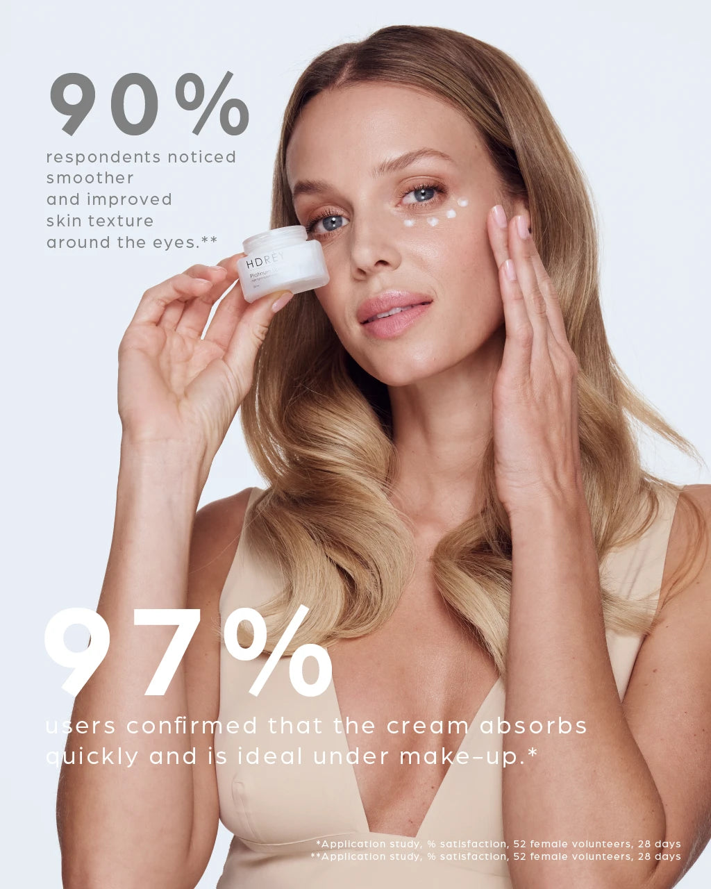 Apply a small amount of cream to the skin around the eyes in the morning and