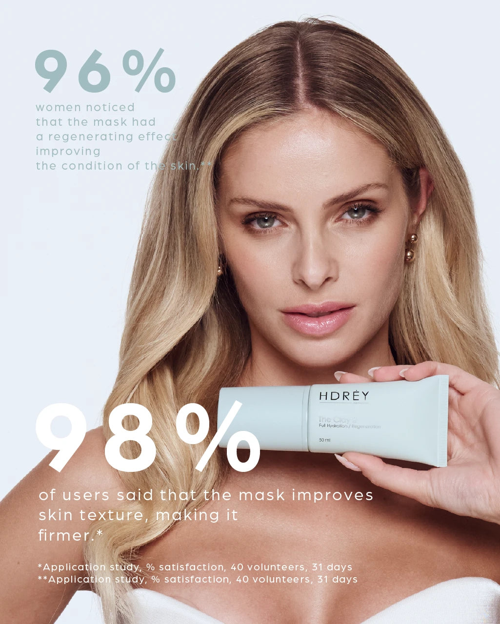 Apply a thin layer of the mask using the applicator to cleansed facial skin, avoiding the eye and lip area. After 20 minutes, rinse with lukewarm water. Apply your favorite HDRÈY serum and cream.