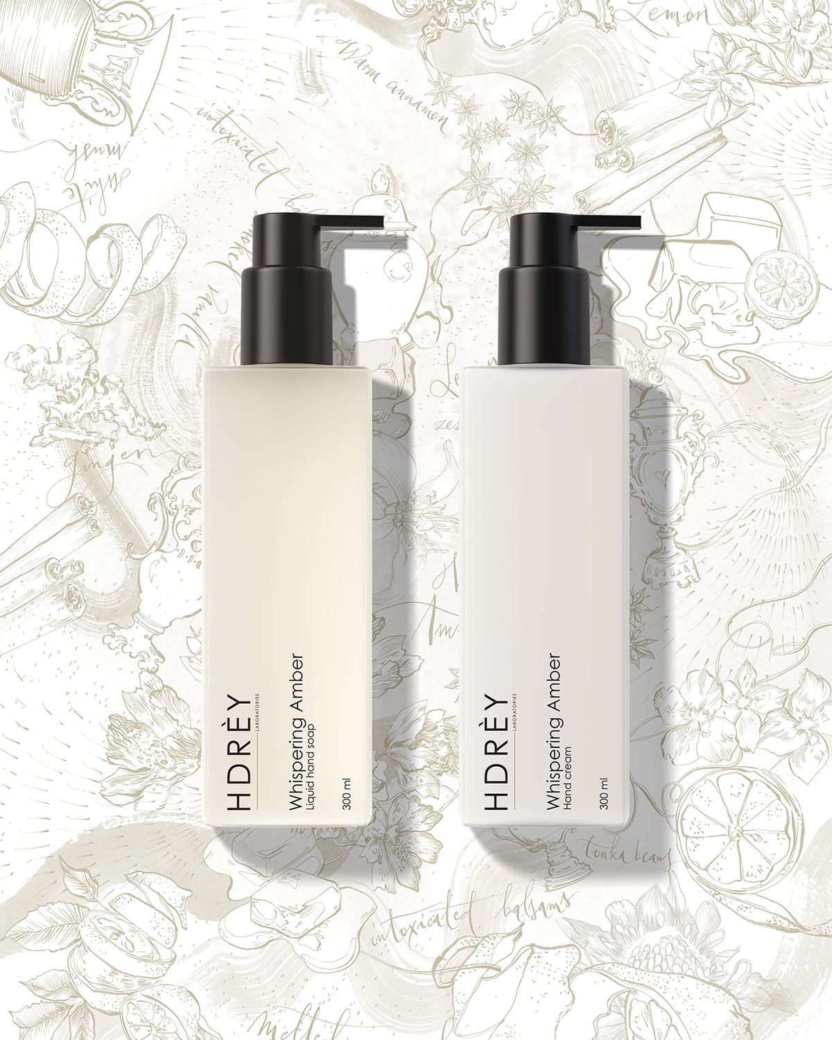 Whispering Amber Hand cream 300 ml: Aqua, Glycerin, Pentylene Glycol, Behenyl Alcohol, Coco-Caprylate/Caprate, Glyceryl Stearate Citrate, Parfum, Prunus Amygdalus Dulcis Oil, Caprylic/Capric Triglyceride, Jojoba Esters, Caulerpa Lentillifera Extract, Argania Spinosa Kernel Oil, Panthenol, Tocopherol, Capryloyl Glycerin/Sebacic Acid Copolymer, Diheptyl Succinate, Propanediol, Glyceryl Heptanoate, Polyacrylate Crosspolymer-6, Caprylhydroxamic Acid, Citric Acid, Sodium Phytate, Sodium Benzoate, Curcuma Longa Root Extract, Sodium Hyaluronate, Raphanus Sativus Root Extract, Hydrolyzed Hyaluronic Acid, Maltodextrin, Acacia Senegal Gum, Haberlea Rhodopensis Leaf Extract, Caprylyl Glycol, Acetyl Hexapeptide-8, Eugenol, Linalool, Benzyl Alcohol, Limonene, Coumarin, Cinnamal, Isoeugenol, Citral.