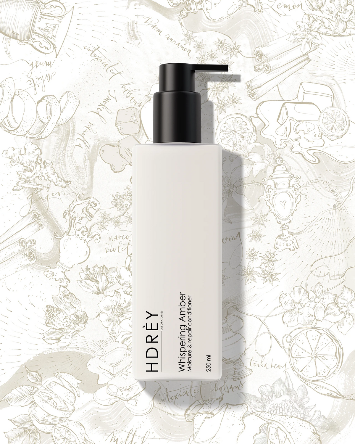 HDRÈY Whispering Amber Moisture &, Repair Conditioner delights with a complex fragrance composition that unfolds in three stages, providing an unforgettable experience: