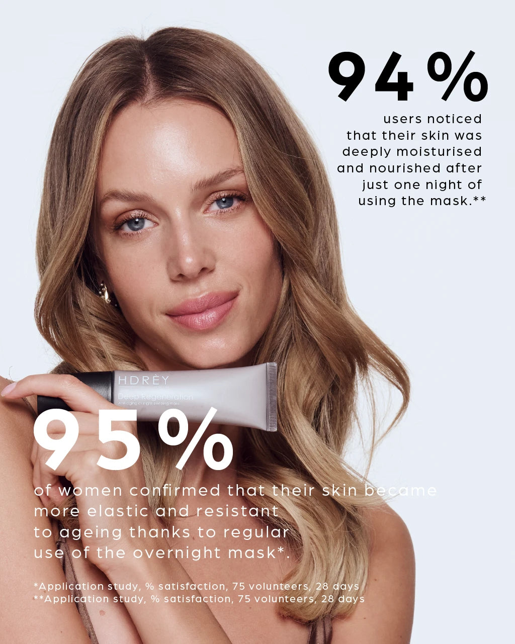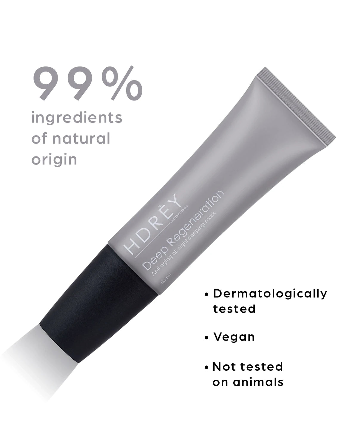 Apply an appropriate amount of the mask using the integrated applicator to the face and neck. Leave on overnight. Do not rinse. For best results, use three times a week, complementing your care with other products from the HDREY The Deep Regeneration series.