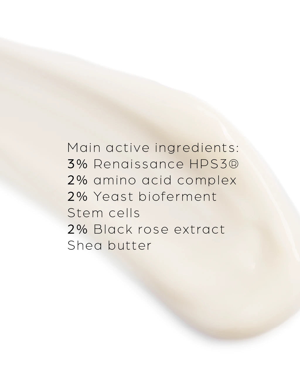 The mask is enriched with the anti-aging Renaissance HPS3® complex, which acts as a powerful antioxidant to protect the skin from oxidative stress and free radical damage. During sleep, the active ingredients penetrate deep into the skin, strengthening its structure and preventing premature aging. Thus, the mask prevents premature aging of the skin and supports its natural repair processes. It works on multiple levels to increase the skin's resistance to harmful external factors, allowing it to maintain a youthful appearance and healthy glow for a longer period of time.