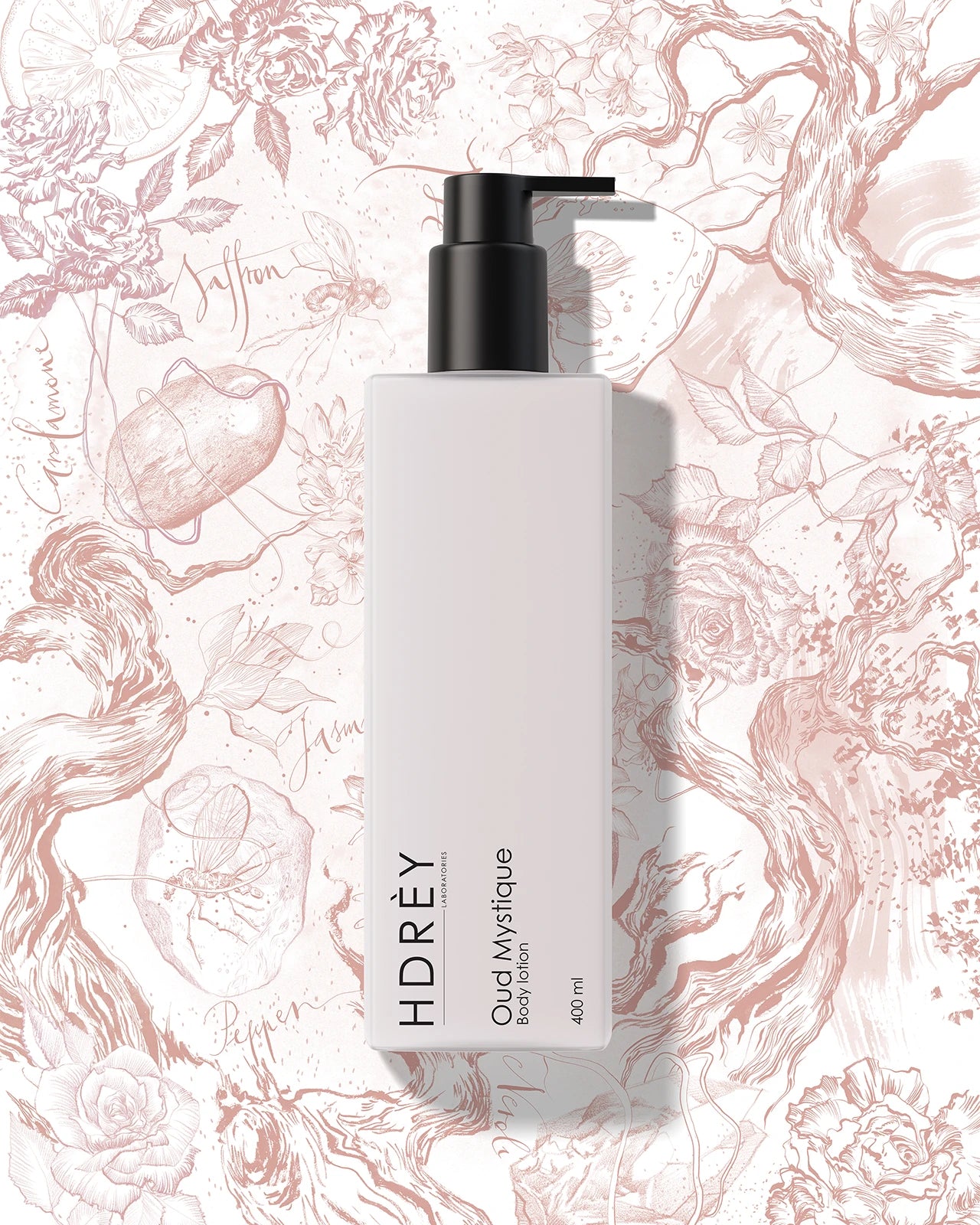 HDRÈY Oud Mystique Hand Lotion delights with its complex fragrance composition, which unfolds in three stages, providing an unforgettable experience: