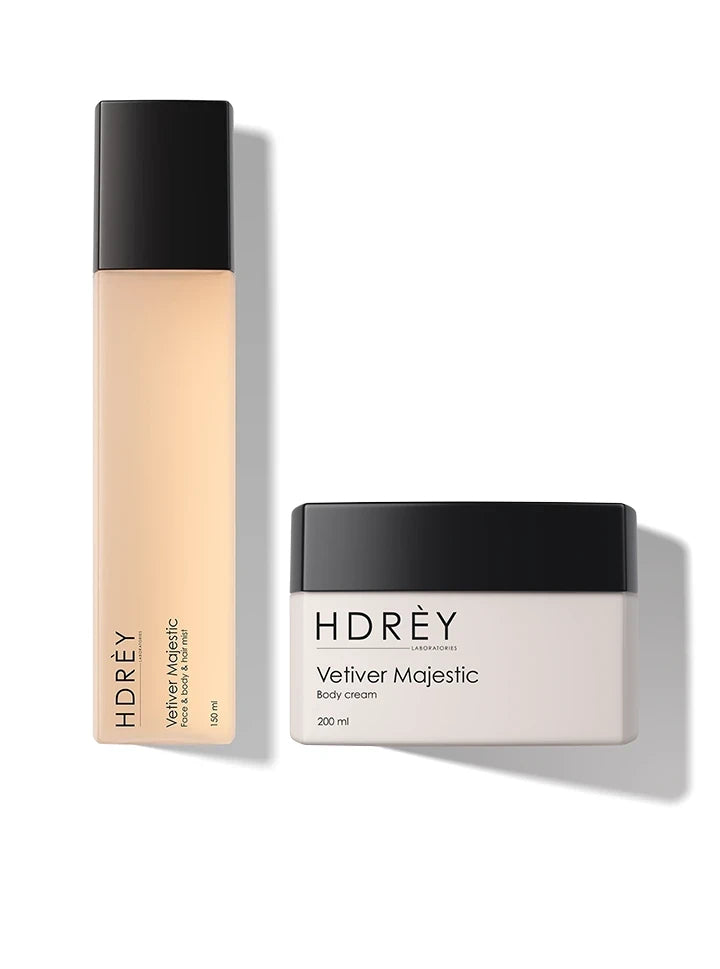 In HDRÈY we believe that fragrance should accompany you throughout the day, creating a harmonious aura of luxury and elegance. HDRÈY Face&,Body&,Hair Mist is part of the extensive Vetiver Majestic product line, which includes perfumes, shower gels and body creams, among others. By using them together, you can build the intensity and longevity of the fragrance on the skin, achieving a layering effect that makes the aroma deeper and more complex. It's a philosophy that allows you to create a unique, personal fragrance signature that accompanies you throughout the day.