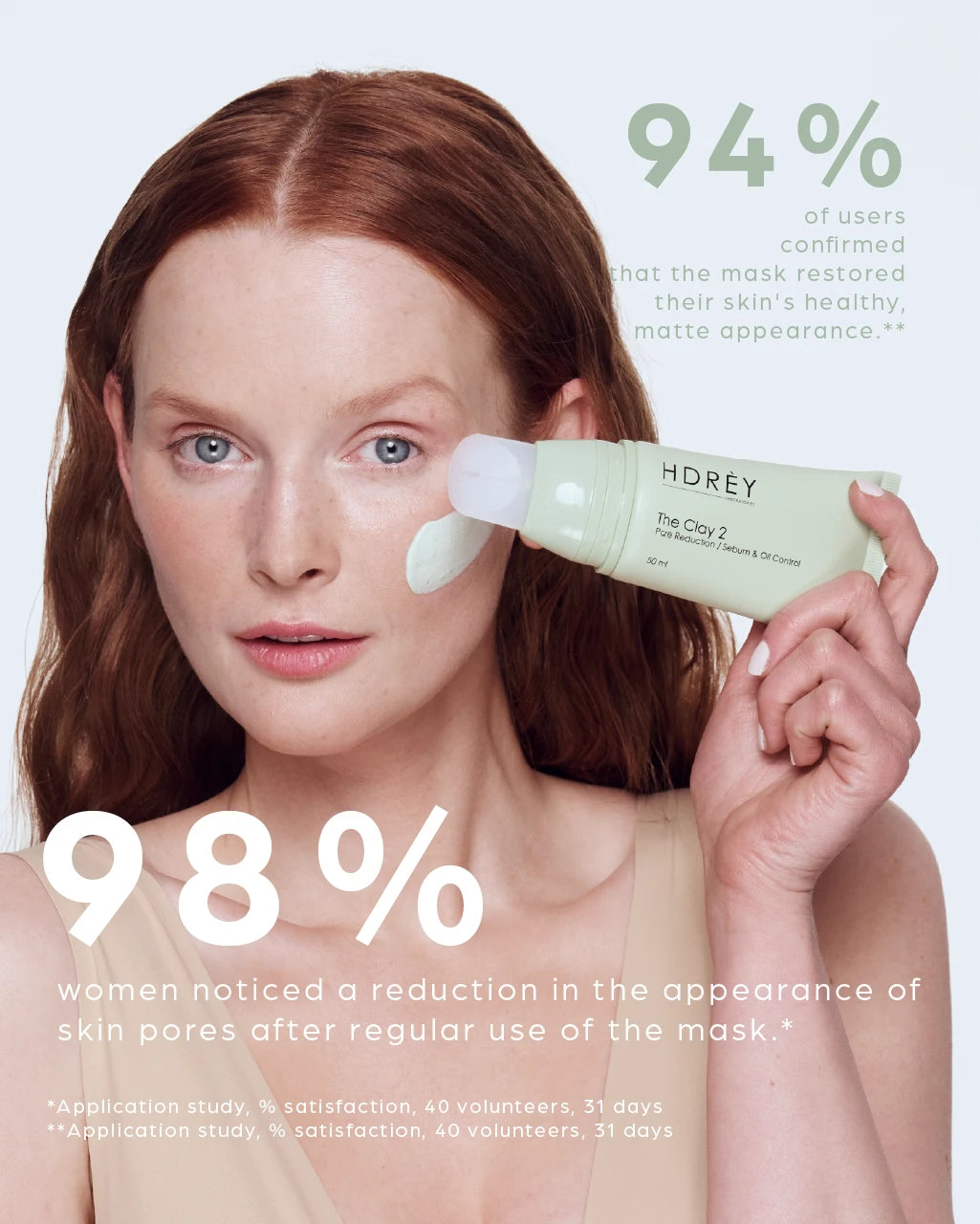 Cleansing and tightening of pores.Clay effectively removes impurities and reduces the visibility of pores.