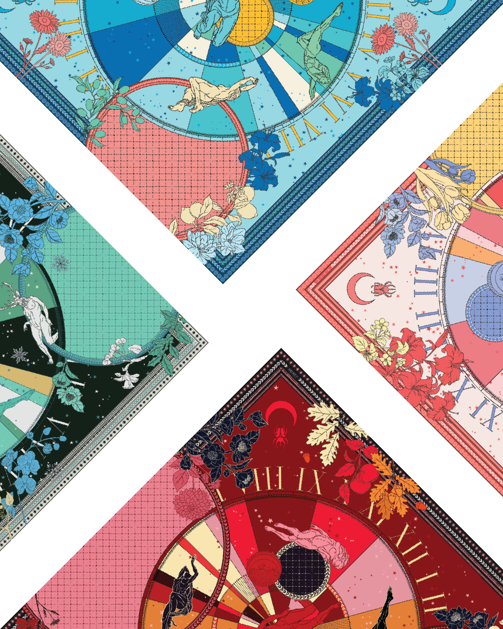Teraz, w ekskluzywnej współpracy z HDRÈY LABORATORIES, Maciej Zień przenosi swój unikalny styl do świata dodatków, tworząc kolekcję jedwabnych apaszek. Każdy z czterech wzorów czerpie inspirację z astrologii oraz magii czterech pór roku, łącząc symbolikę znaków zodiaku z ponadczasowym designem.