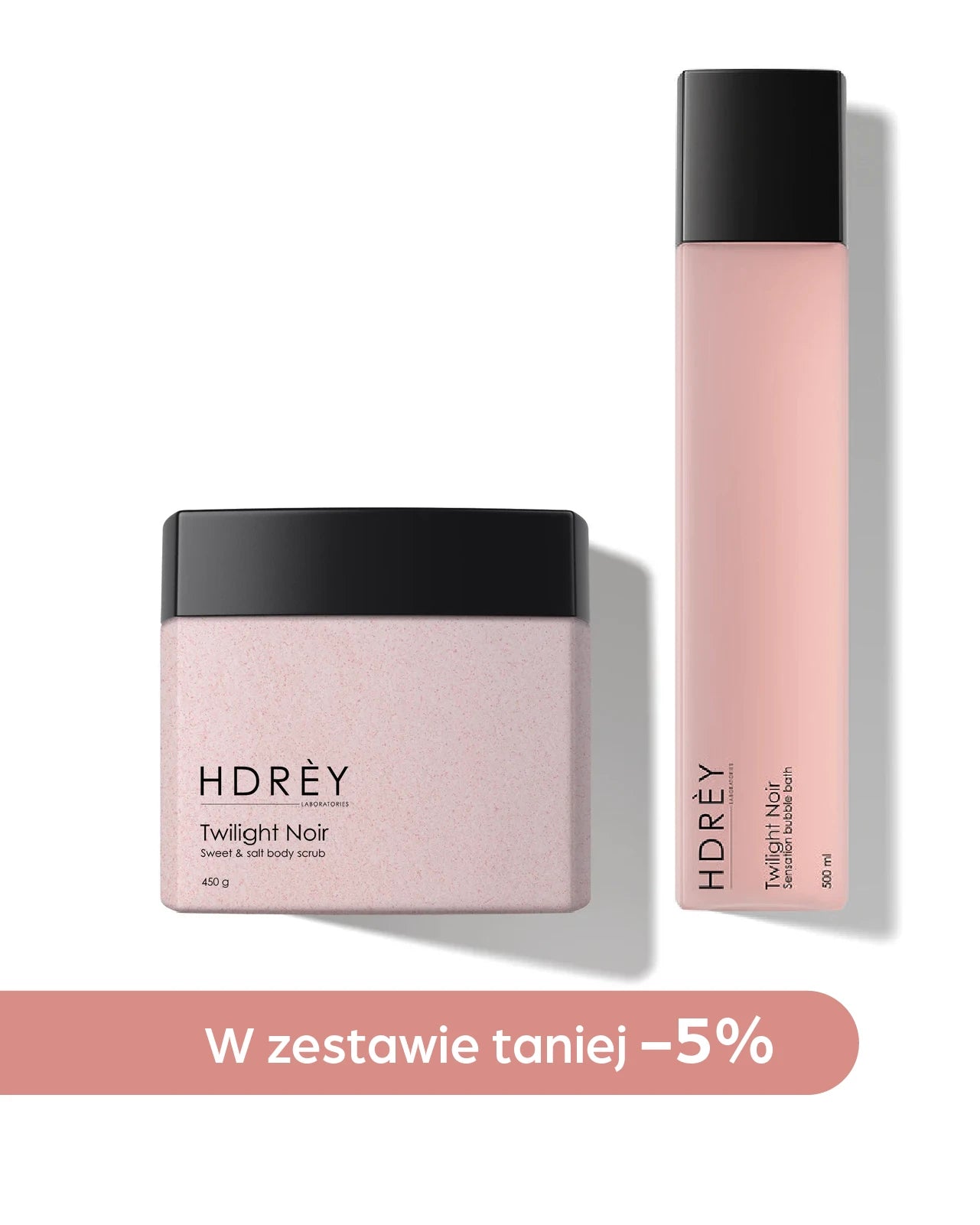 Zestaw Body Set HDRÈY Twilight Noir to harmonijne połączenie aromatycznego płynu do kąpieli oraz cukrowo-solnego peelingu do ciała, stworzone dla osób, które pragną połączyć skuteczną pielęgnację z wyjątkowym doświadczeniem zapachowym. Oba produkty otulają skórę wyrafinowaną kompozycją Twilight Noir, pozostawiając ją gładką, odświeżoną i subtelnie perfumowaną.